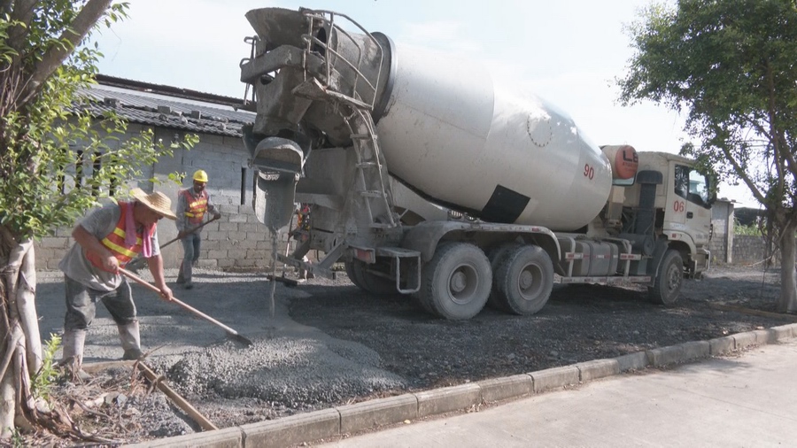 近日,在桂平市长安工业园长安三路道路基础设施工程施工现场,施工机械马达轰鸣,挖掘机、水泥车来回作业,施工人员抓紧施工,人行道硬化工程正如火如荼进行。