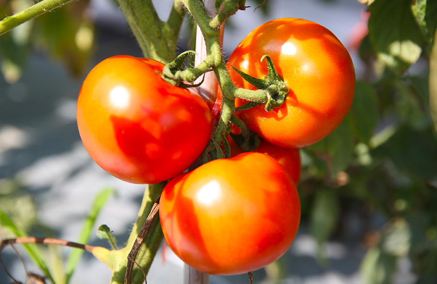 阳光下的西红柿晶莹剔透。
