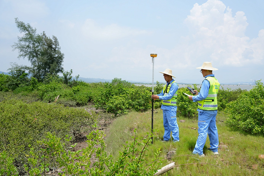 工作人员对龙眼墩无居民海岛登记单元界址实地补充调查。黄葛炎 摄