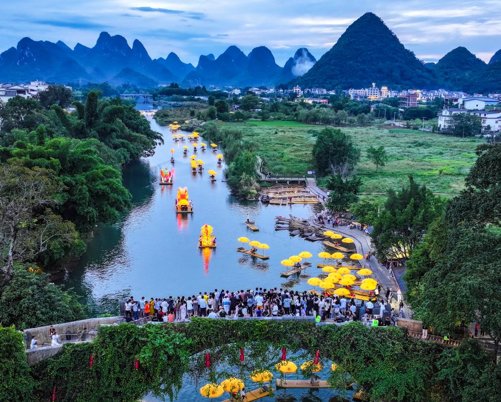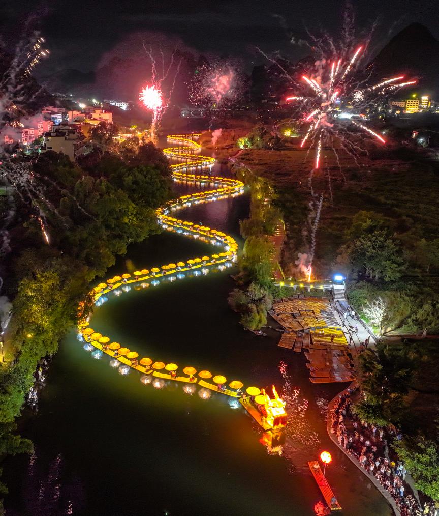 近年来,广西壮族自治区桂林市阳朔县利用遇龙河丰富的山水资源,全方位拓展乡村旅游夜间消费新业态,持续释放“夜经济”活力,赋能乡村振兴。