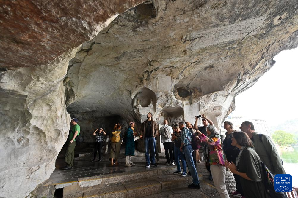 10月25日,游客在广西桂林市伏波山还珠洞游览观光。