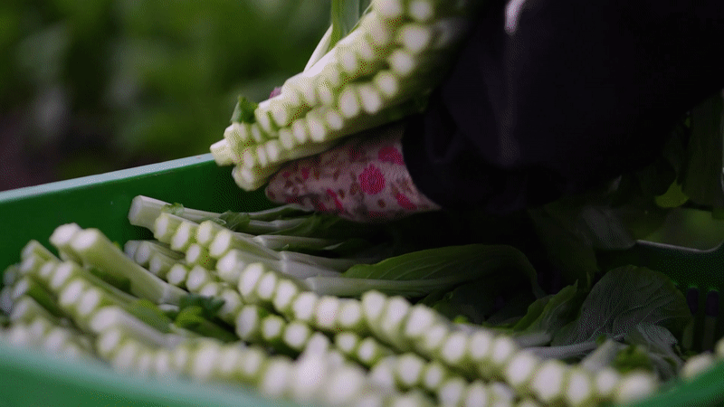 在钟山县贺州农投供港蔬菜基地,工人采摘的蔬菜经分拣包装后,第二天早上乘供港冷链直通车直送大湾区,实现“当天采、次日达”,持续稳定保障大湾区“菜篮子”供应。