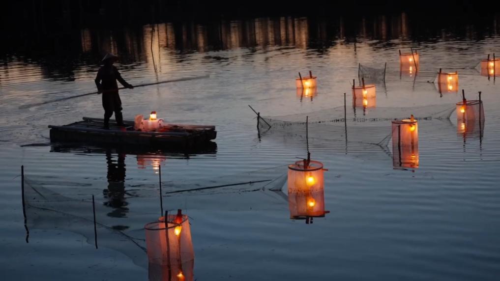 傍晚时分,京族渔民在近海点亮一盏盏虾灯,以光为饵,诱虾入笼。伴着晚霞,渔舟归航,这是冬日里暮色中交织而成的温柔乐章。